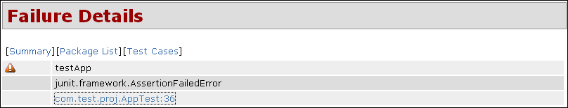 执行mvn site站点生成后,您会注意到报告的“故障详细信息”部分中,有一个链接可用于将您重定向到导致故障的源代码。