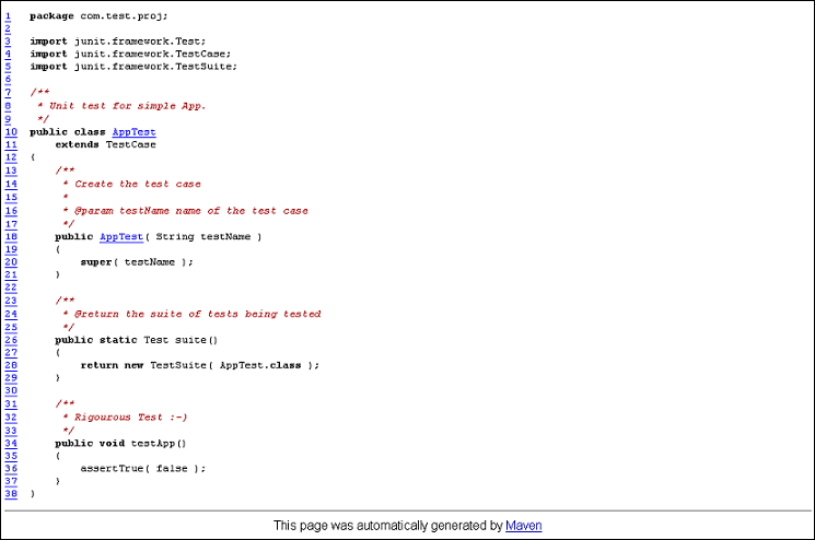 有时我们希望立即知道导致测试失败的源代码的行号。Surefire 报告插件能够交叉引用导致测试失败的源代码。为了激活此功能,maven-jxr-plugin应在<reporting>POM 的部分中声明 以及maven-surefire-report-plugin. 有关详细信息,请阅读Maven JXR 插件的文档。